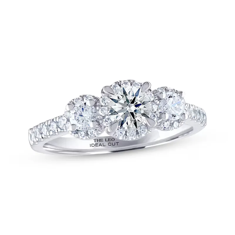 THE LEO Ideal Cut Diamond Three-Stone Engagement Ring 1-1/2 ct tw 14K White Gold